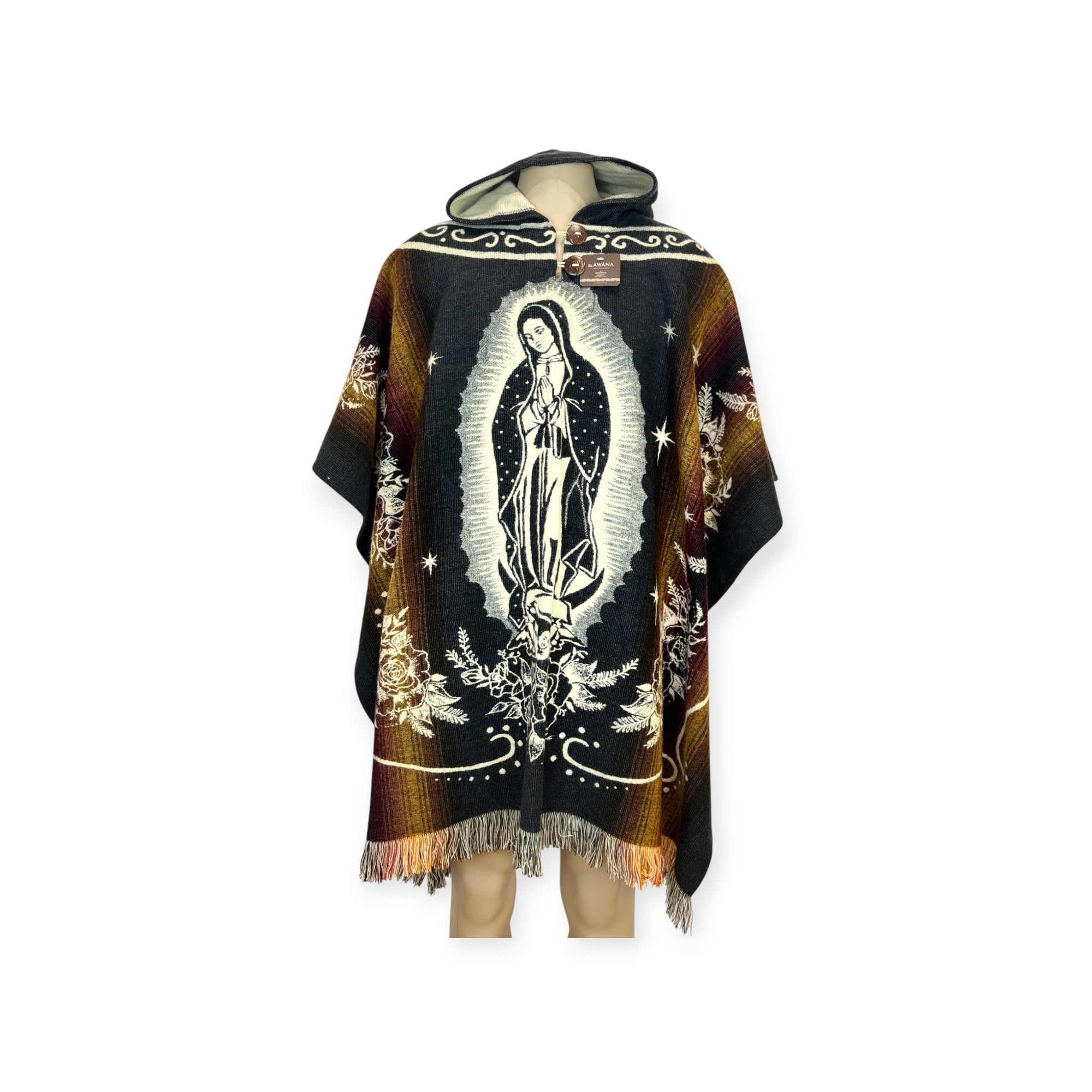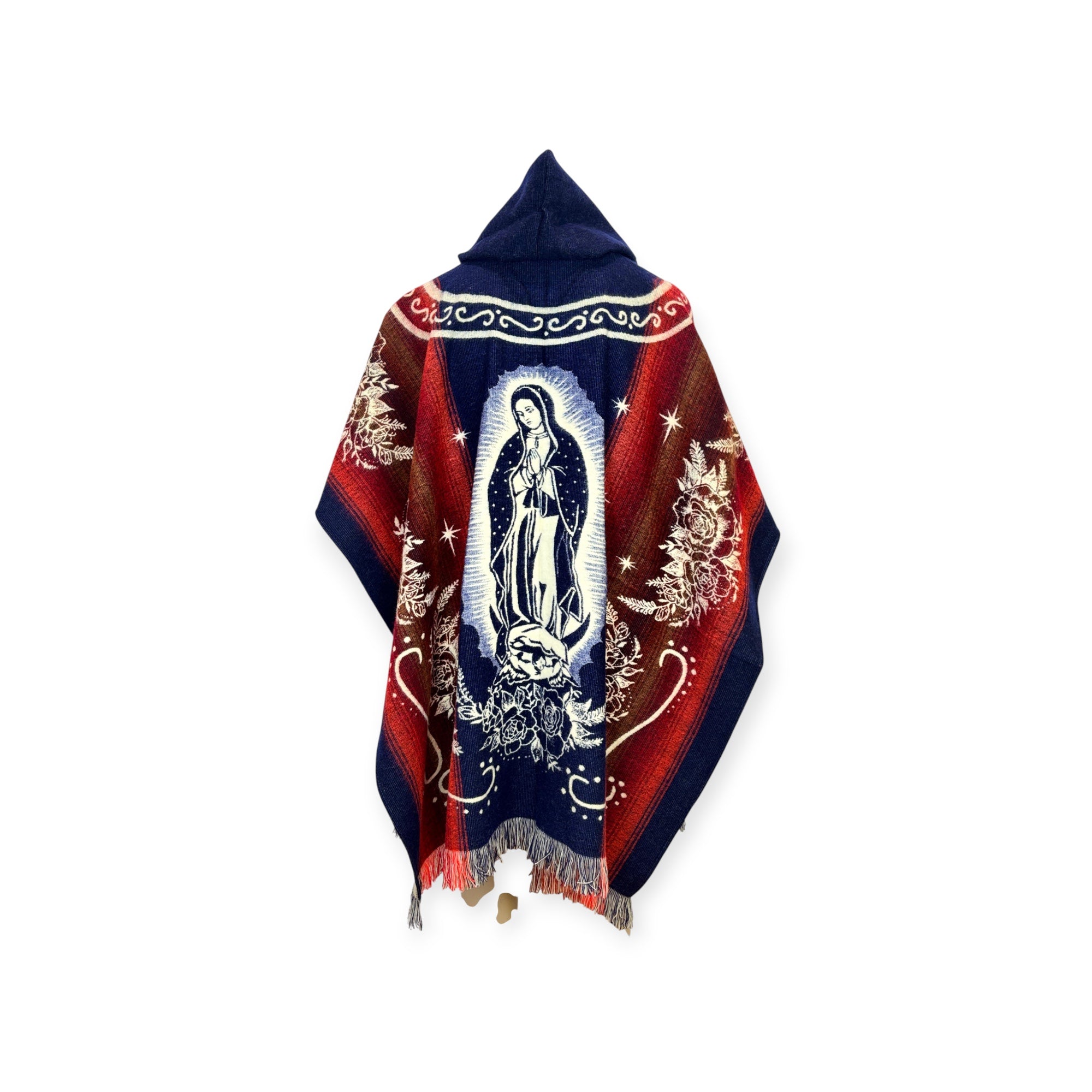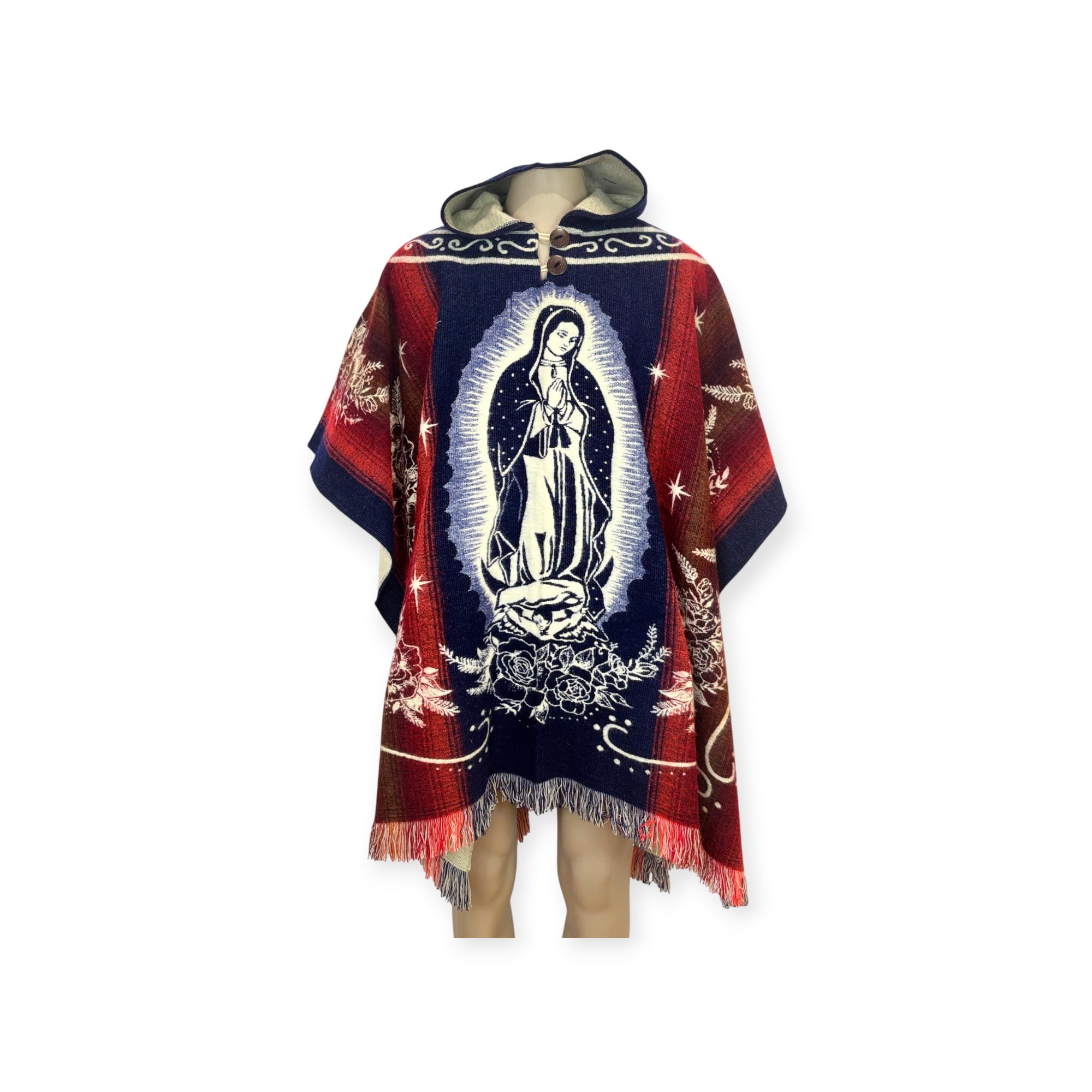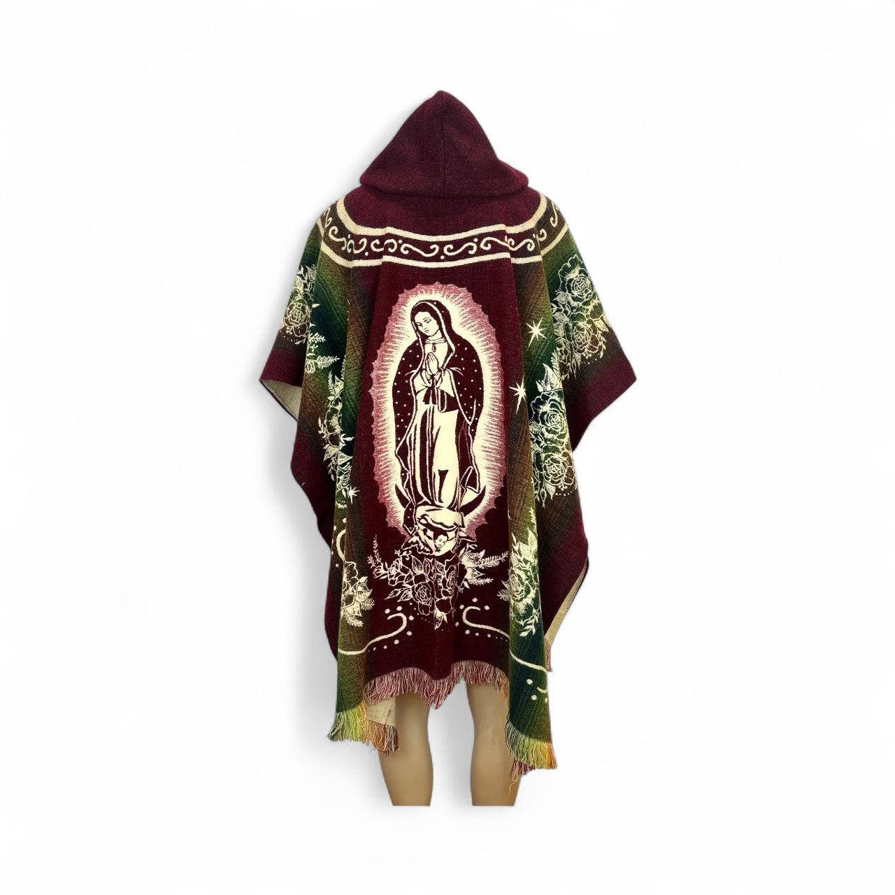 • Load image into Gallery viewer, Poncho with a religious design on a Amaranth purple background
